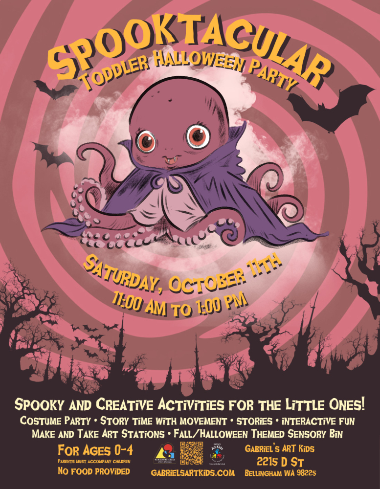 Join Gabriel's Art Kids for a safe Halloween celebration designed for toddlers ages 0-4! This gentle version of Halloween fun features costume party, interactive story time with movement, make-and-take art stations, and fall/Halloween themed sensory bins. Parents must accompany children (not a drop-off event).