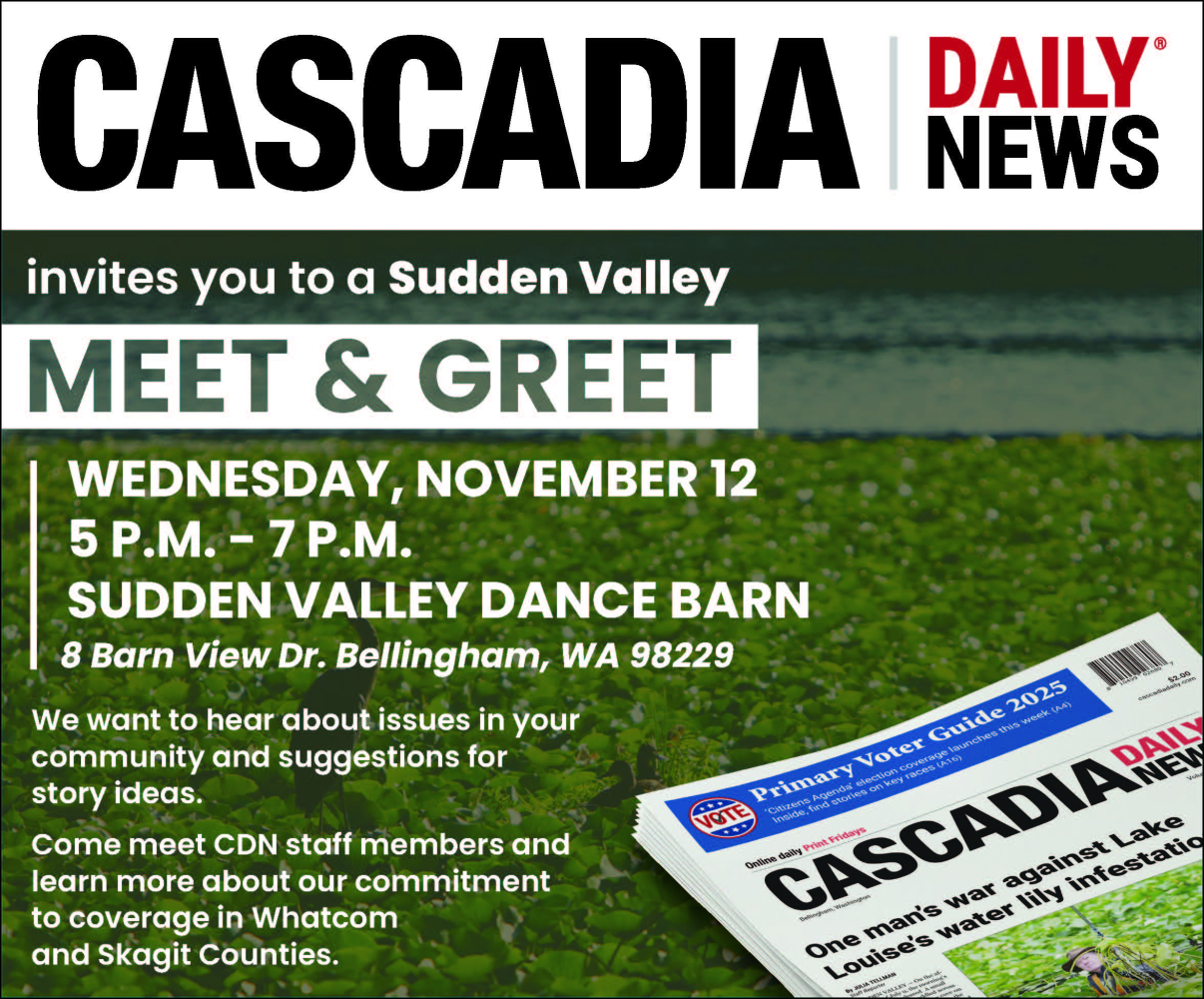 From the wooded trails of Lookout Mountain to invasive water lilies on Lake Louise, Sudden Valley and Glenhaven have a unique identity and view of Whatcom County. Come share your story and ideas with Cascadia Daily News. This FREE Meet & Greet is a way for us to better understand the nuances of living along Lake Whatcom's western shore. It gives you a chance to tell us what you think people should know about your community, ask questions and put a face to the bylines you read at CDN.