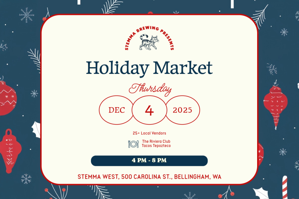 Enjoy a Stemma brew or pick something from our curated selection of non-alcoholic beverages, WA wines, ciders, and seltzers. Grab a bite to eat from The Riviera Club or Tacos Tepozteco and enjoy a lovely evening out! Vendor booths will be spaced both indoors and outdoors, so bring layers!