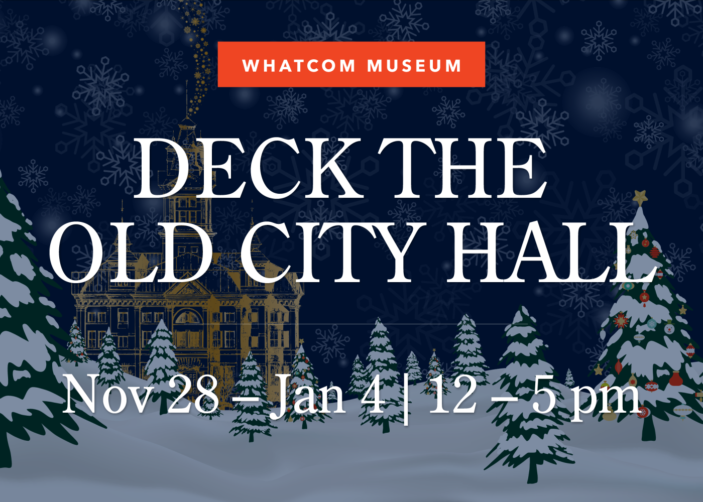Step into the holiday magic at Deck the Old City Hall! From November 28, 2025, to January 4, 2026, Whatcom Museum’s Old City Hall transforms into a dazzling holiday wonderland filled with twinkling trees, garlands, and wreaths that create a festive ambiance. Admission is by donation, with all proceeds supporting Museum programs and exhibitions.