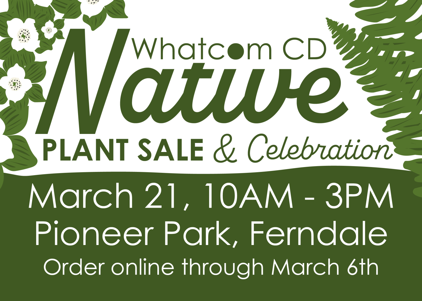 Are you dreaming of Spring? Join us at the Whatcom CD’s Native Plant Sale & Celebration March 21st! This family-friendly, free event will feature exhibitors and vendors, food and beverages, and a selection of 40 native plants for purchase!