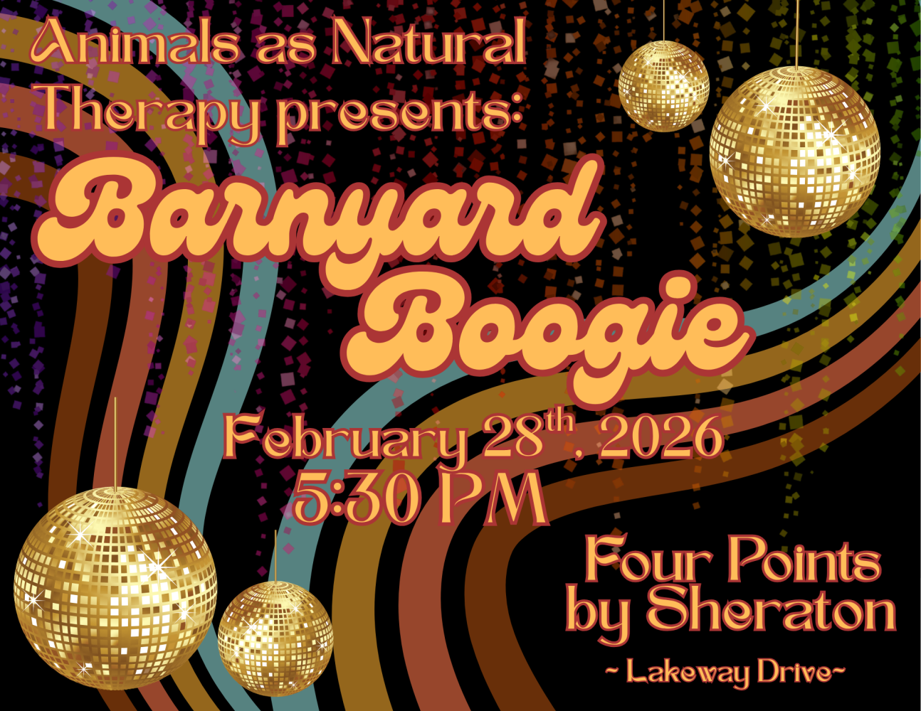 Dust off your sequins and join Animals as Natural Therapy for our signature fundraising celebration, the Barnyard Boogie Gala, on Saturday, February 28th at 5:30 PM at the Four Points Sheraton on Lakeway Drive.