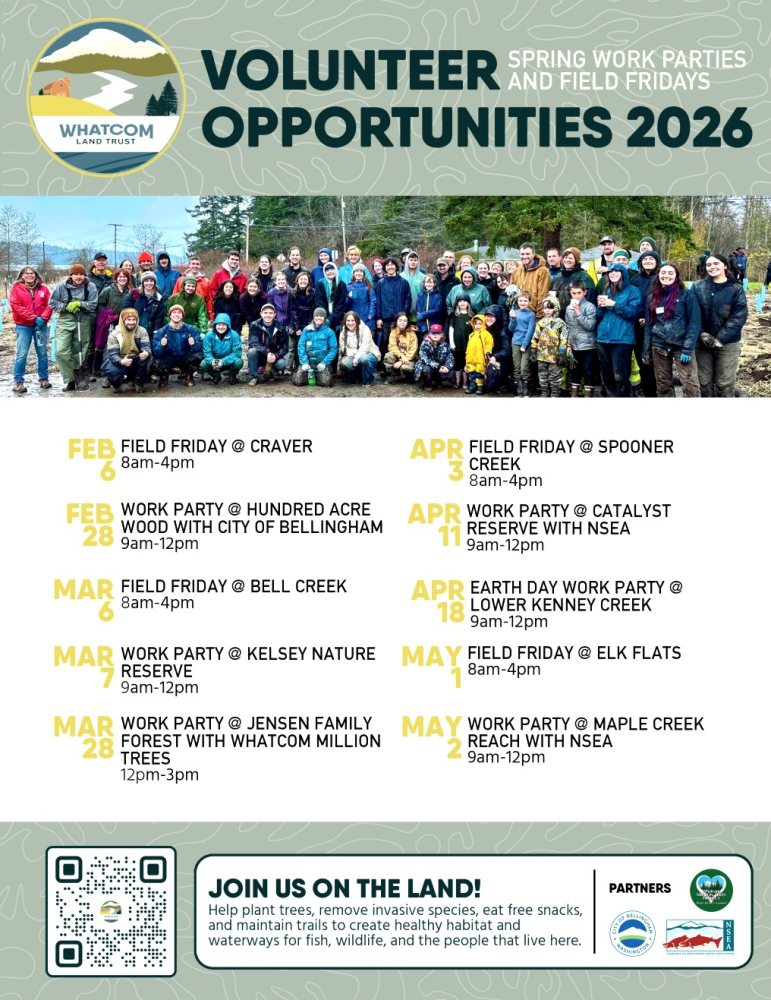 Once you register, additional details will be sent by our Volunteer Coordinator, Lauren Ralbovsky, a week to 4 days before the event. If you have questions in the meantime, email lauren.r@whatcomlandtrust.org.