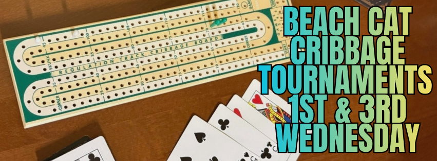 Cribbage Tournament Nights at Beach Cat Bring your boards, grab a pint, and get ready for some friendly competition! Whether you’re a seasoned cribbage pro or just playing for fun, this is your night to play, and win bragging rights!