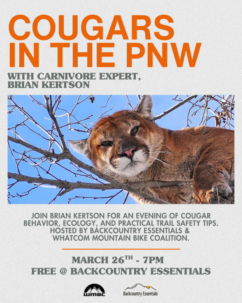 Please join the Washington Department of Fish and Wildlife’s Carnivore Research Scientist, Brian Kertson, for an evening of all things cougar in the great PNW.