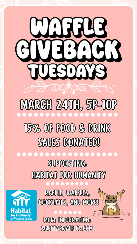 Waffle Give Back Tuesdays! March 24th, 5-10p, 15% of food and drink sales donated! Supporting: Habitat for Humanity 7th Annual Trashion Show at a later date/location.