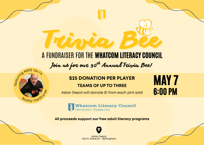 Join us for an evening of fun, friendly competition, and community impact at the 30th Annual Whatcom Literacy Council Trivia Bee! Gather your team and test your knowledge across a wide range of trivia topics in this lively, interactive event.