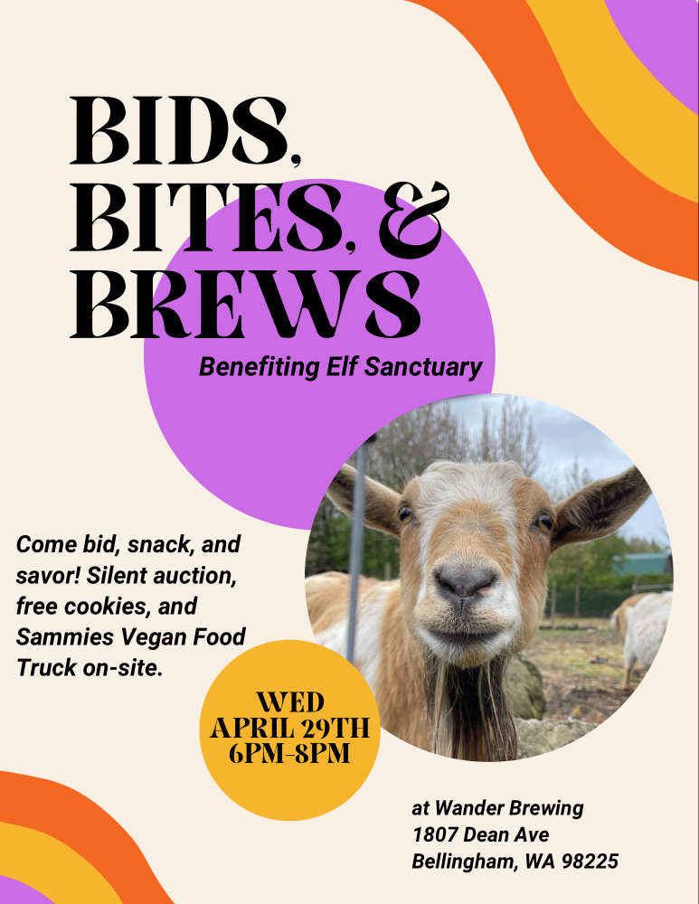 The evening will feature a silent auction with a variety of items, including individual pieces, curated bundles, and special experiences such as a guided tour of Elf Sanctuary and a weekend stay at Elf. Sammies Vegan will be on site serving their delicious plant based food, and Wander Brewing will have refreshing drinks available for purchase. We are so thankful to Wander for hosting us. All are invited to enjoy complimentary vegan cookies while browsing and bidding.