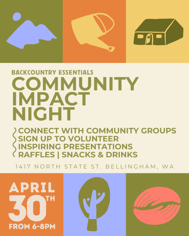 Join us at Backcountry Essentials on April 30 from 6–8pm for an evening centered on connecting with local nonprofits and community organizations in the Bellingham area. Meet the people doing impactful work, learn about the causes they support, and discover meaningful ways to get involved!