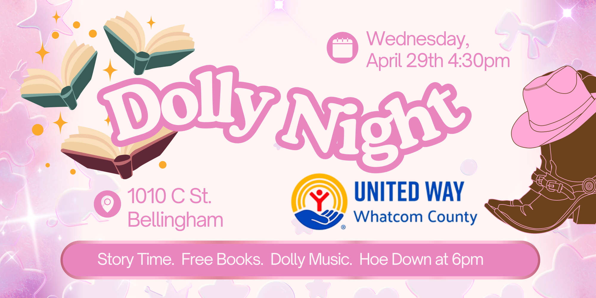We’re proud to partner with the United Way of Whatcom County, who will be helping lead the night and spotlight the amazing Dolly Parton Imagination Library, bringing free books to kids in our community.