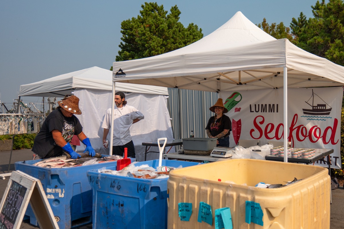 It houses a seafood market with locally harvested sustainable fish and shellfish, a cafe with a traditional salmon BBQ pit, retail shops featuring Native artwork and jewelry, and artist studios where Lummi vendors can share their work.
